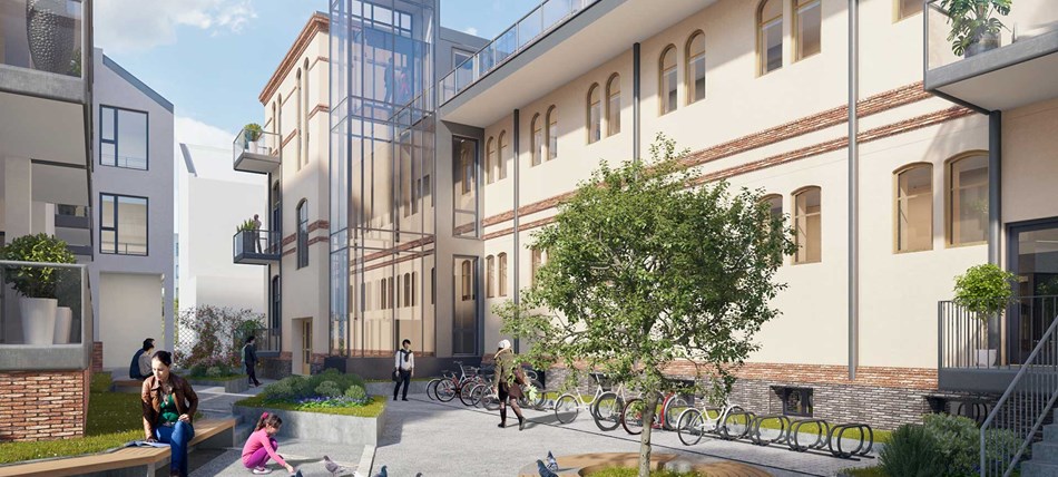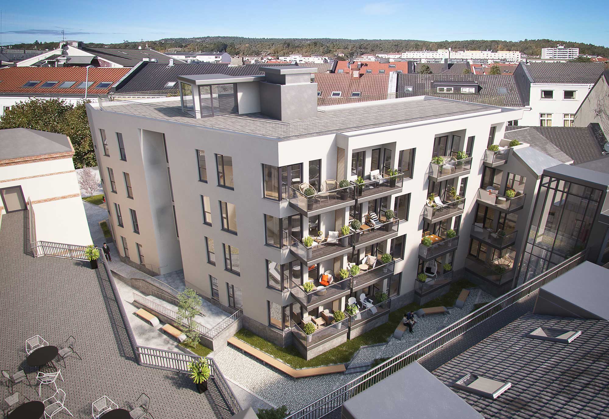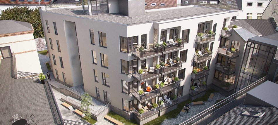 Midt i byen, i en gammel skolegård i Dronningens gate, la vi ut vi 30 leiligheter for salg i et nyoppført bygg . Disse ligger side om side med den gamle skolen under rehabilitering. ”Dronningens48” ble bygget i moderne arkitektur og ble et godt estetisk tilskudd til den gamle paradegaten, Dronningens gate. Alle er solgt. Leilighetene har egen balkong, tilgang til felles takterrasse og attraktive uteområder rett utenfor døren. Og de lykkelige eierne lever nå et urbant liv i fantastiske Kristiansand sentrum!